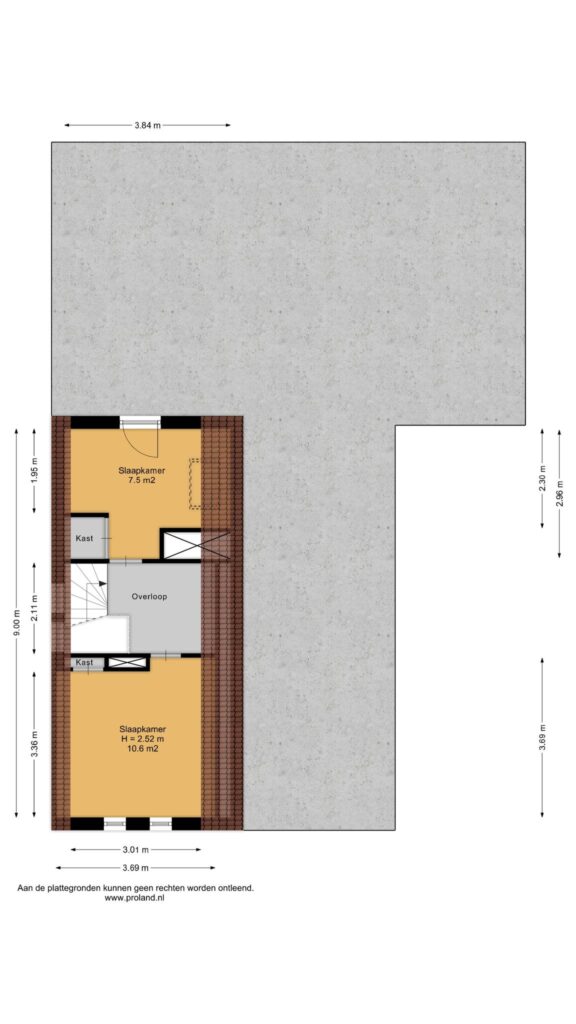 Middels een vaste trap heb je toegang tot de tweede verdieping waar zich twee slaapkamers bevinden van ca. 7 en 11 m². Beide slaapkamers zijn voorzien van inbouwkasten.