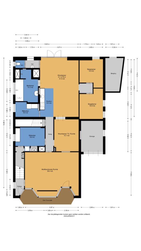* Aangebouwde garage van 2,89 m x 4,08 m