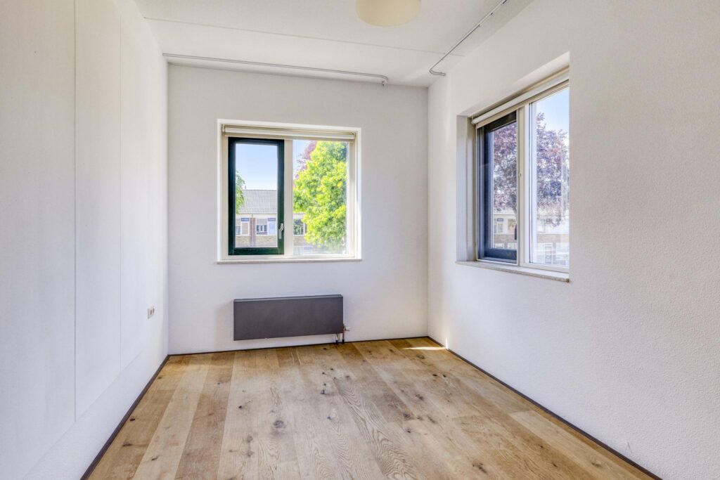 De indeling bestaat op de begane grond uit een hal met toilet, meterkast, berging en trapopgang naar de eerste verdieping, waarbij de hal leidt naar de tuingerichte woonkamer. Deze woonkamer is verdeeld in twee ruimtes, beiden met een laminaatvloer en tuindeuren. Aan de straatzijde bevindt zich de woonkeuken, voorzien van dito vloer en eigentijdse inrichting met inbouwapparatuur. Over de eerste verdieping biedt de overloop plaats aan een vaste trapopgang naar de tweede verdieping en toegang tot een drietal slaapkamers met houten vloeren alsmede een eigentijdse badkamer voorzien van een douchecabine, wastafel en wandcloset. De tweede verdieping beschikt over een was- annex stookruimte, een vierde slaapkamer een royaal dakterras.