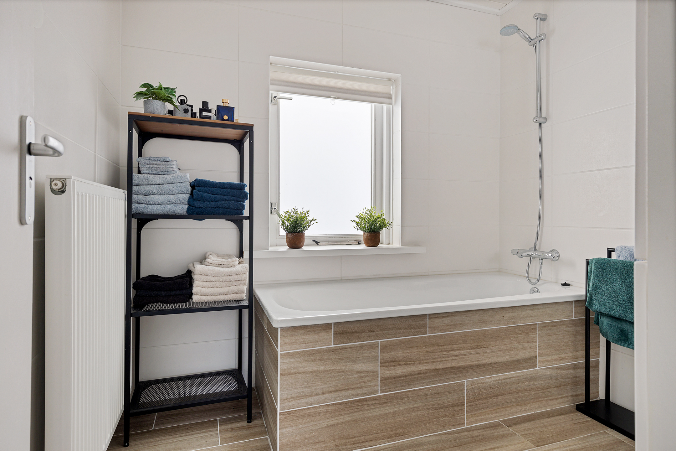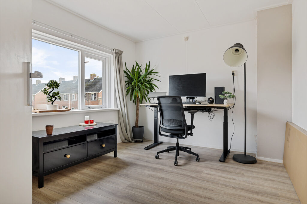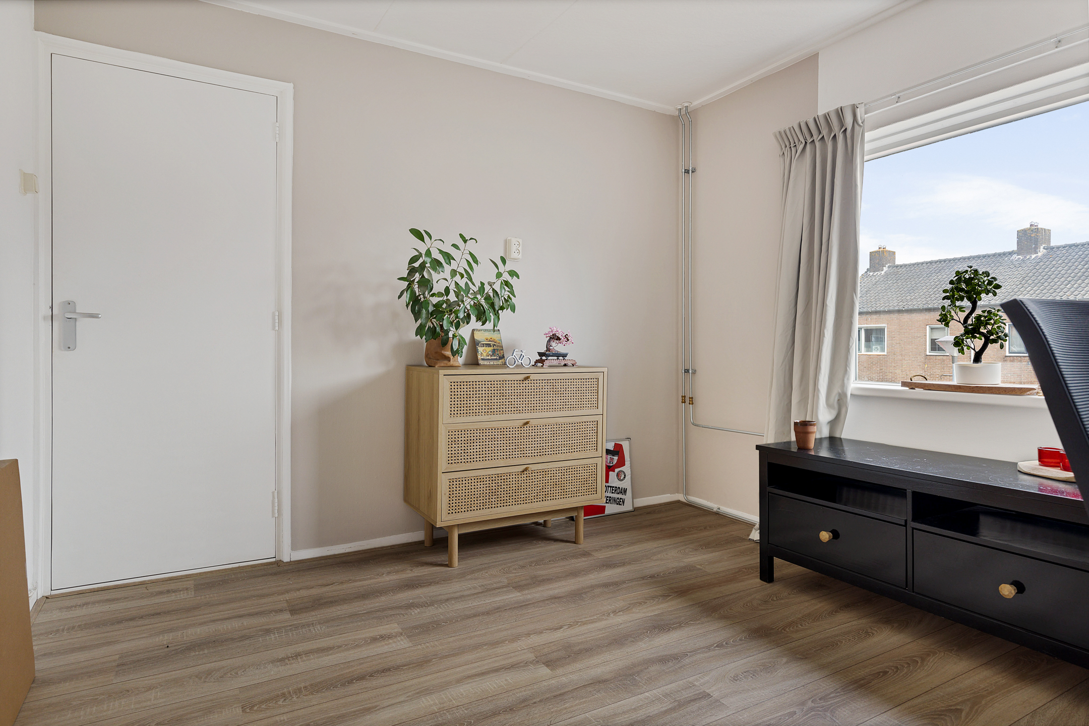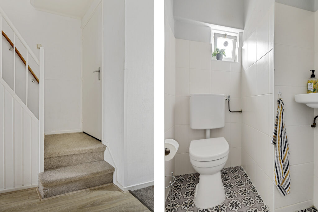 Deze heerlijke starterswoning kent een functionele indeling. Zo biedt de ontvangsthal direct al plaats aan een eigentijds betegeld toilet, een functionele provisieruimte en de trapopgang naar de eerste verdieping. De doorzonwoonkamer beschikt vervolgens over een nette laminaatvloer en tuindeur. Het geheel wordt op de begane grond gecompleteerd door de moderne, gesloten keuken voorzien van de aangrenzende bijkeuken. Op de eerste verdieping zijn de slaapkamers gesitueerd, drie in totaal en voorzien van laminaatvloeren en tapijt. Ook de moderne badkamer is op deze woonlaag gesitueerd, compleet met lig-bad en wastafelmeubel maar ook een tweede - separate - doucheruimte. Het geheel wordt op de tweede verdieping gecompleteerd door de vliering via een vlizotrap.