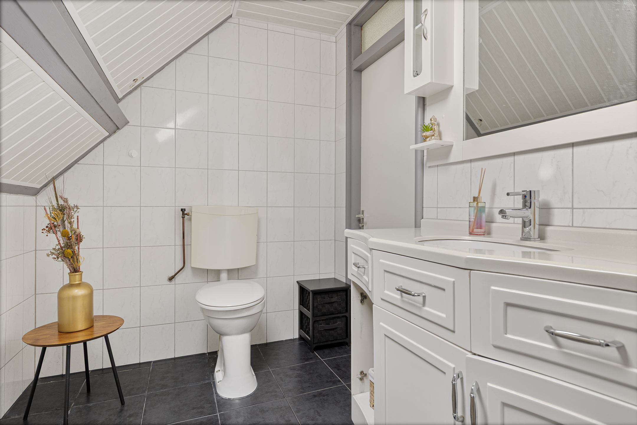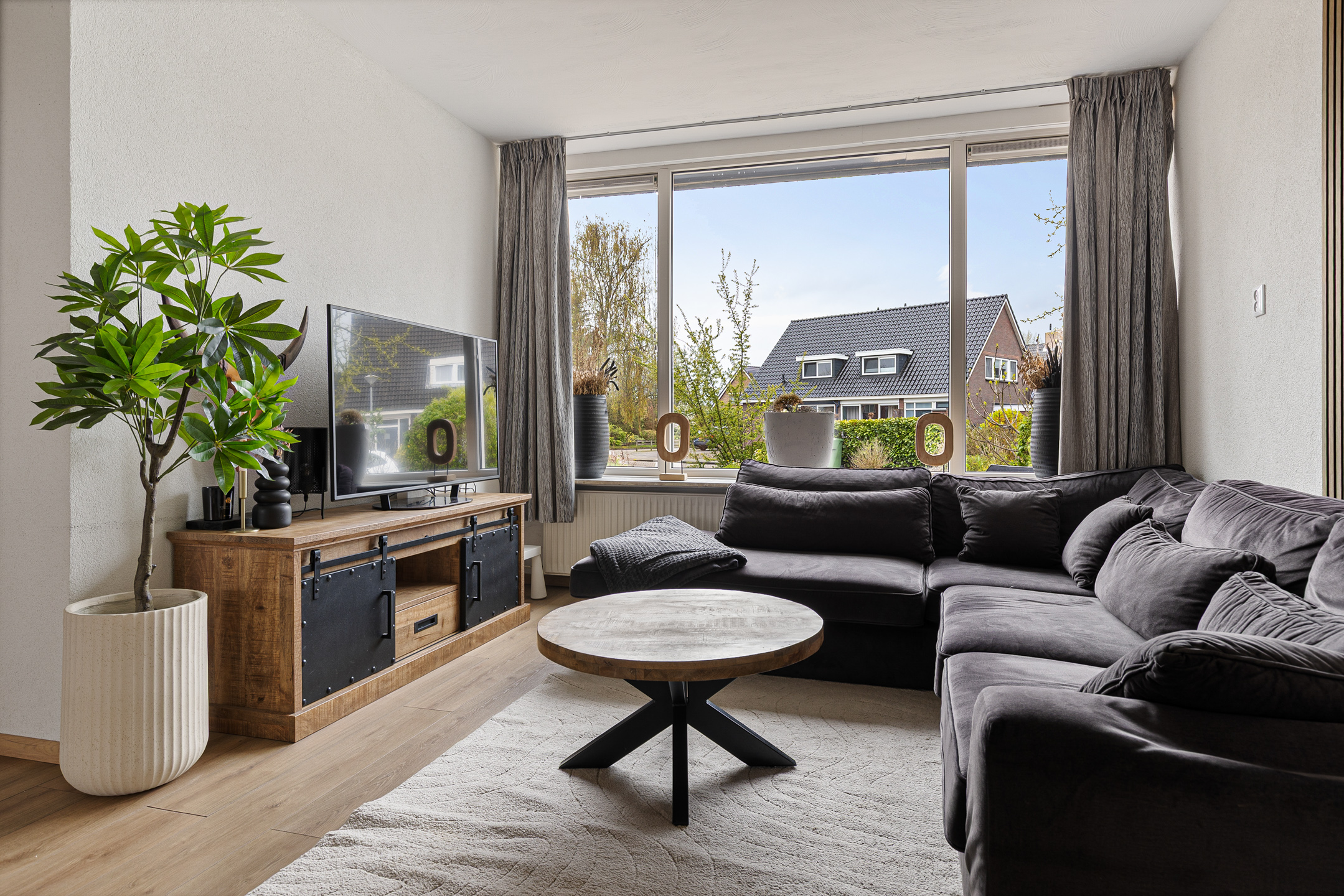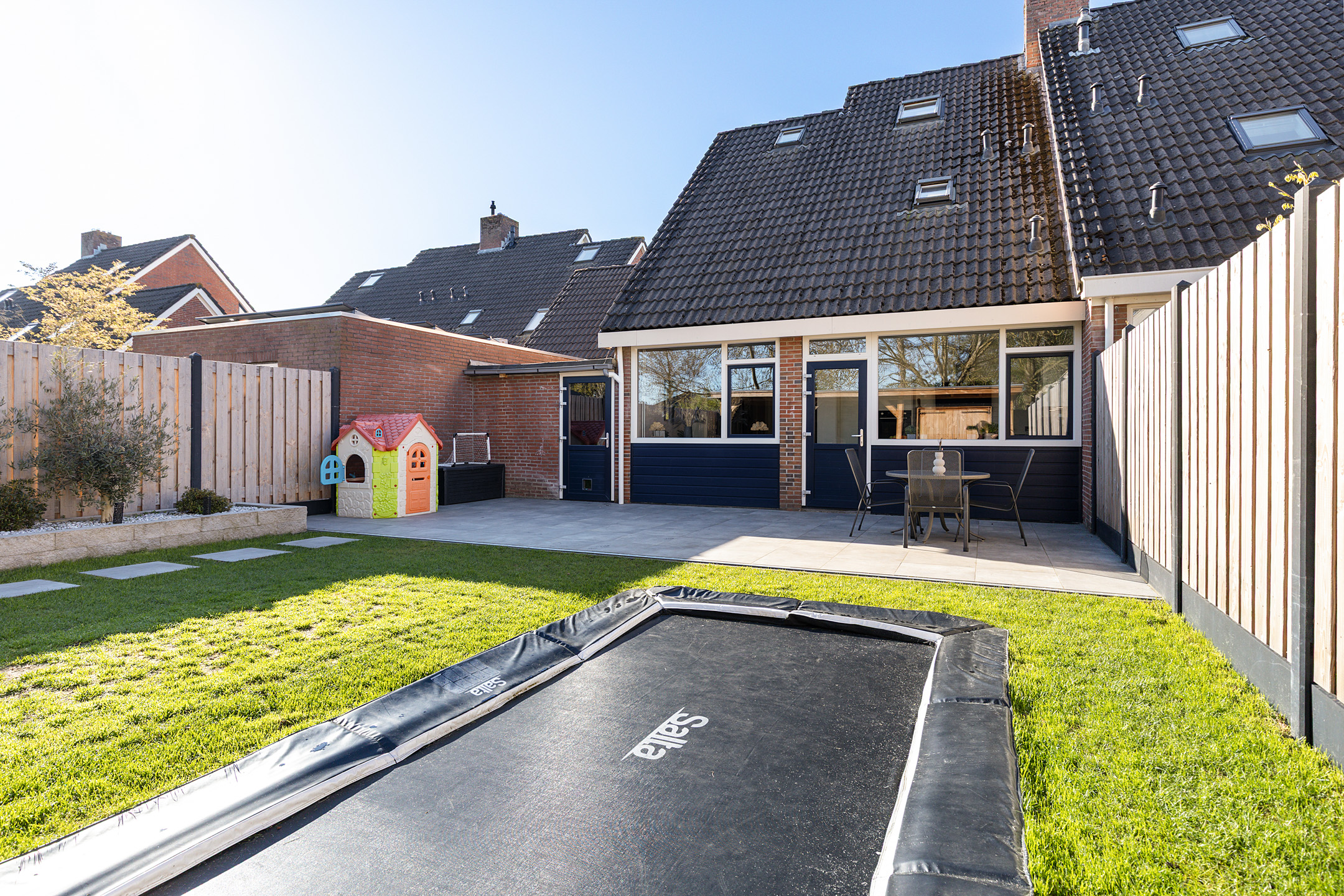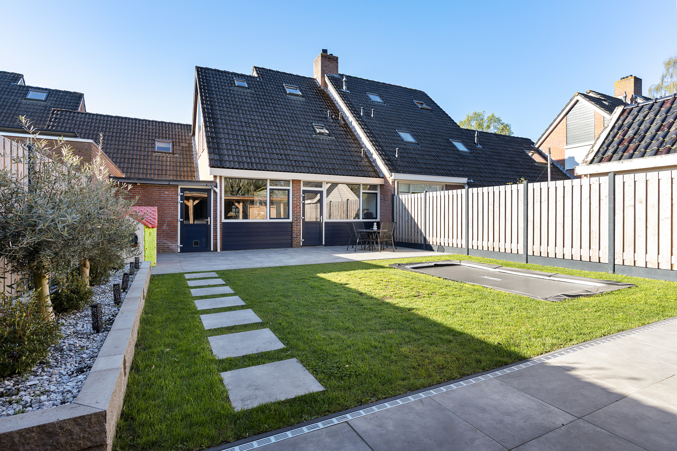 Sommige 2-onder-1-kap woningen zijn standaard, andere juist niet… Neem nou de 2-onder-1-kap woning aan de Tonnistil 12 in Wagenborgen. In de eerste plaats vanwege de maatvoeringen van deze gezinswoning. Met name op de begane grond ruim bemeten, maar niet alleen intern. Ook het perceel is bovengemiddeld te noemen, waarbij in de eerste plaats de diepe voortuin direct opvalt. Parkeergelegenheid voor meerdere auto’s, onder andere in de aangebouwde garage. Achter de woning vinden we misschien wel de grootste verrassing. De keurige aanlegde siertuin biedt namelijk plaats aan een tuinschuur met een heerlijke veranda. Ideaal voor heerlijke zomeravonden!