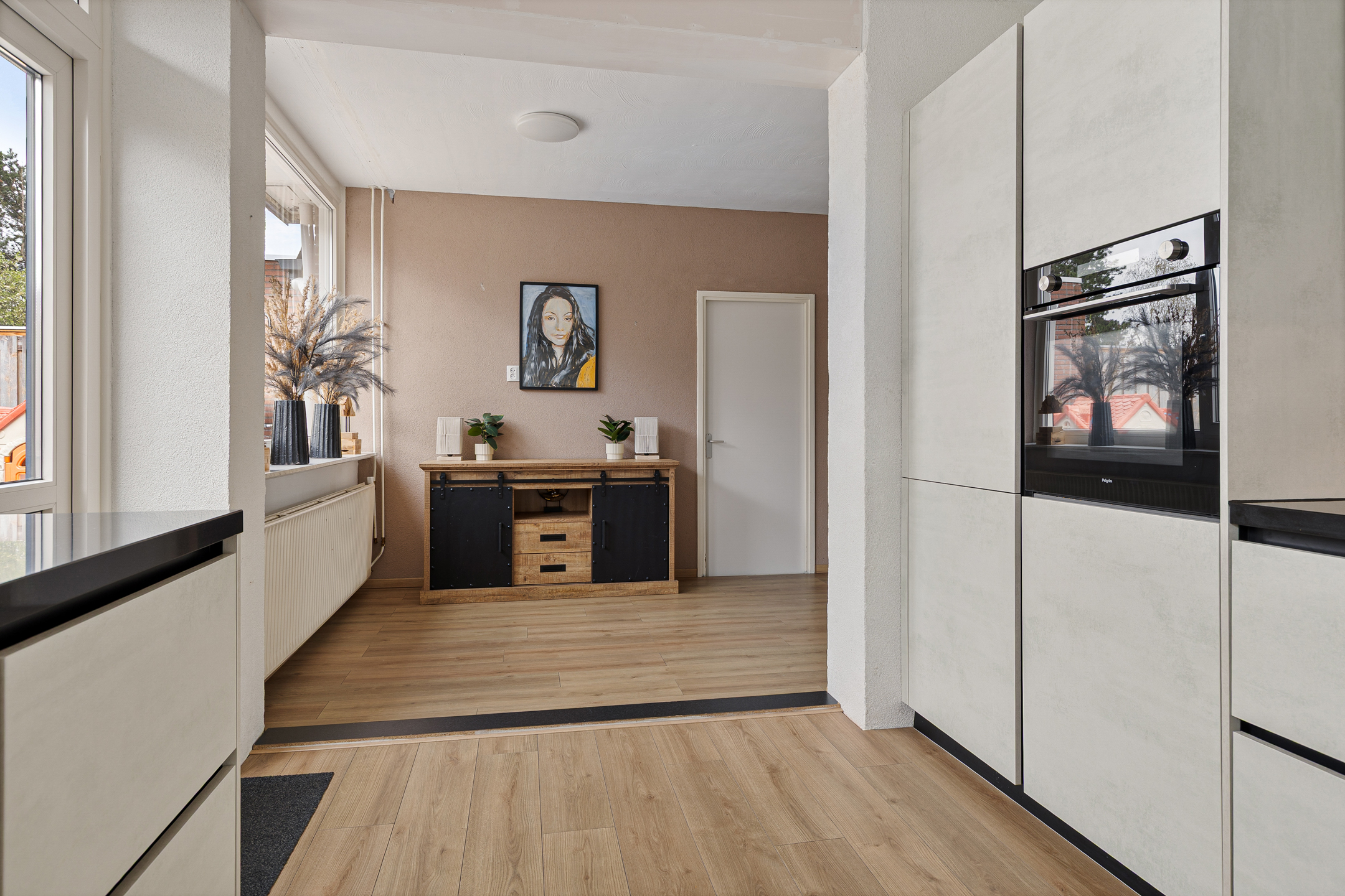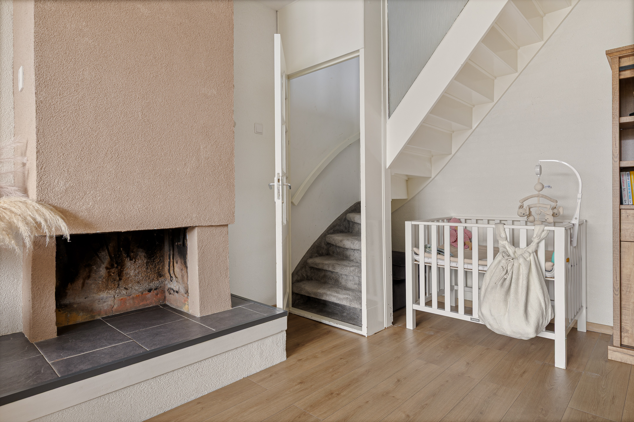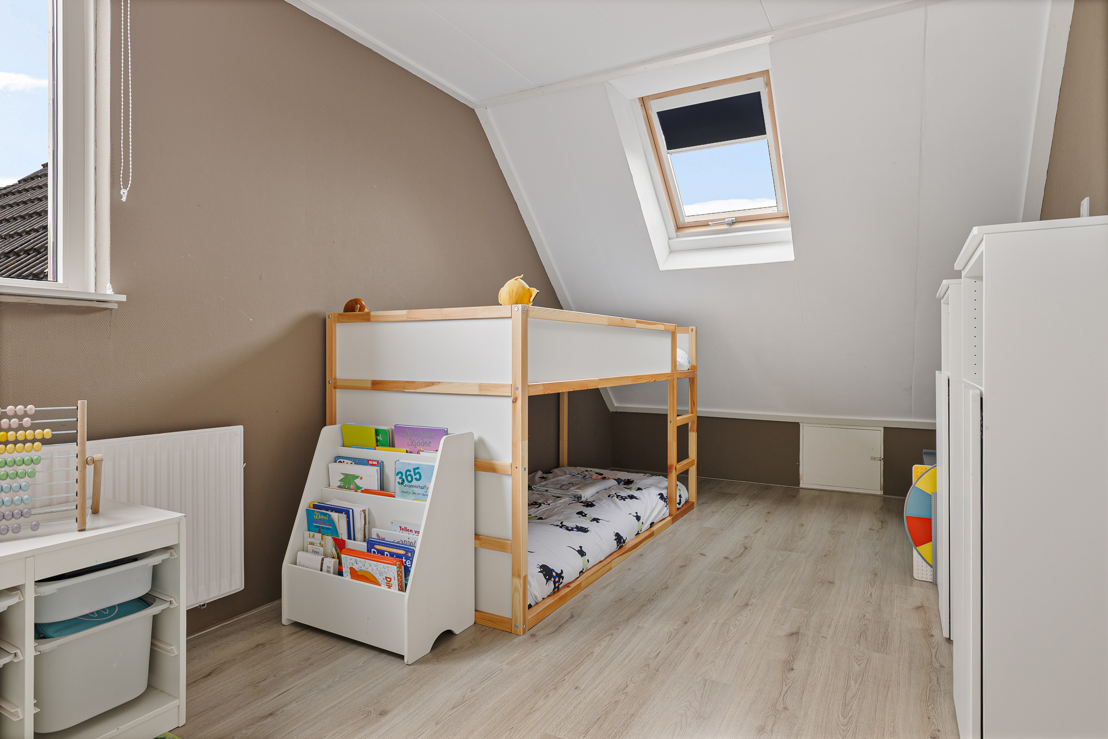 De woning is ook onderhoudsvriendelijk en modern te noemen. Onderhoudsvriendelijk vanwege de aanwezigheid van kunststof kozijnen en modern vanwege onder andere de jonge keuken- en toiletinrichting. Qua indeling speels en functioneel. Om te beginnen aan de straatzijde Z-vormige woonkamer met laminaatvloer en open haard. Tuingericht de woonkeuken met moderne inrichting, tuindeur en bijkeuken met doorgang naar de garage. Op de eerste verdieping drie functionele slaapkamers en de ruime badkamer waarbij een vaste trapopgang leidt naar de tweede verdieping. Hier is een grote zolder met slaapkamer in wording gesitueerd.
