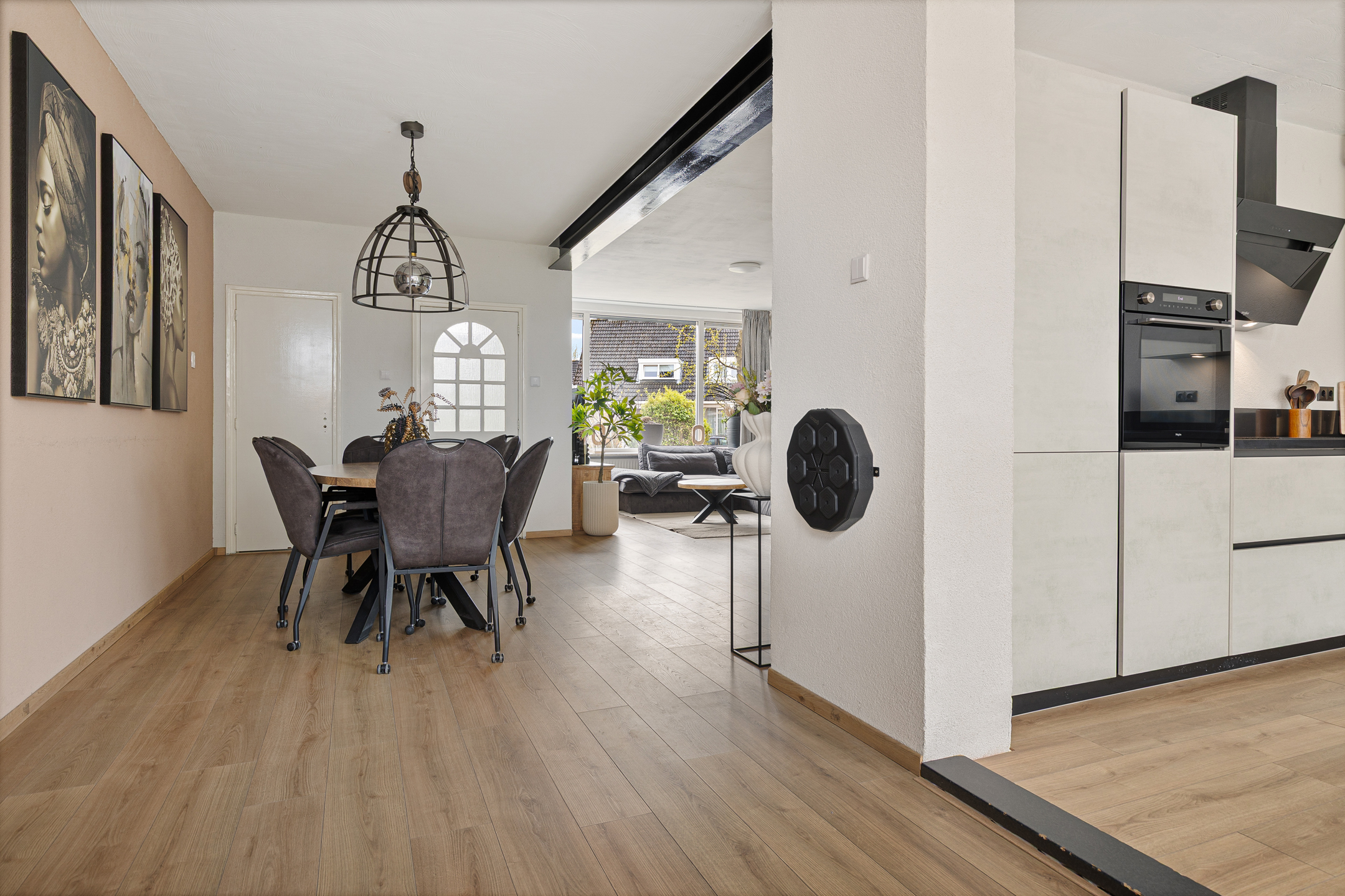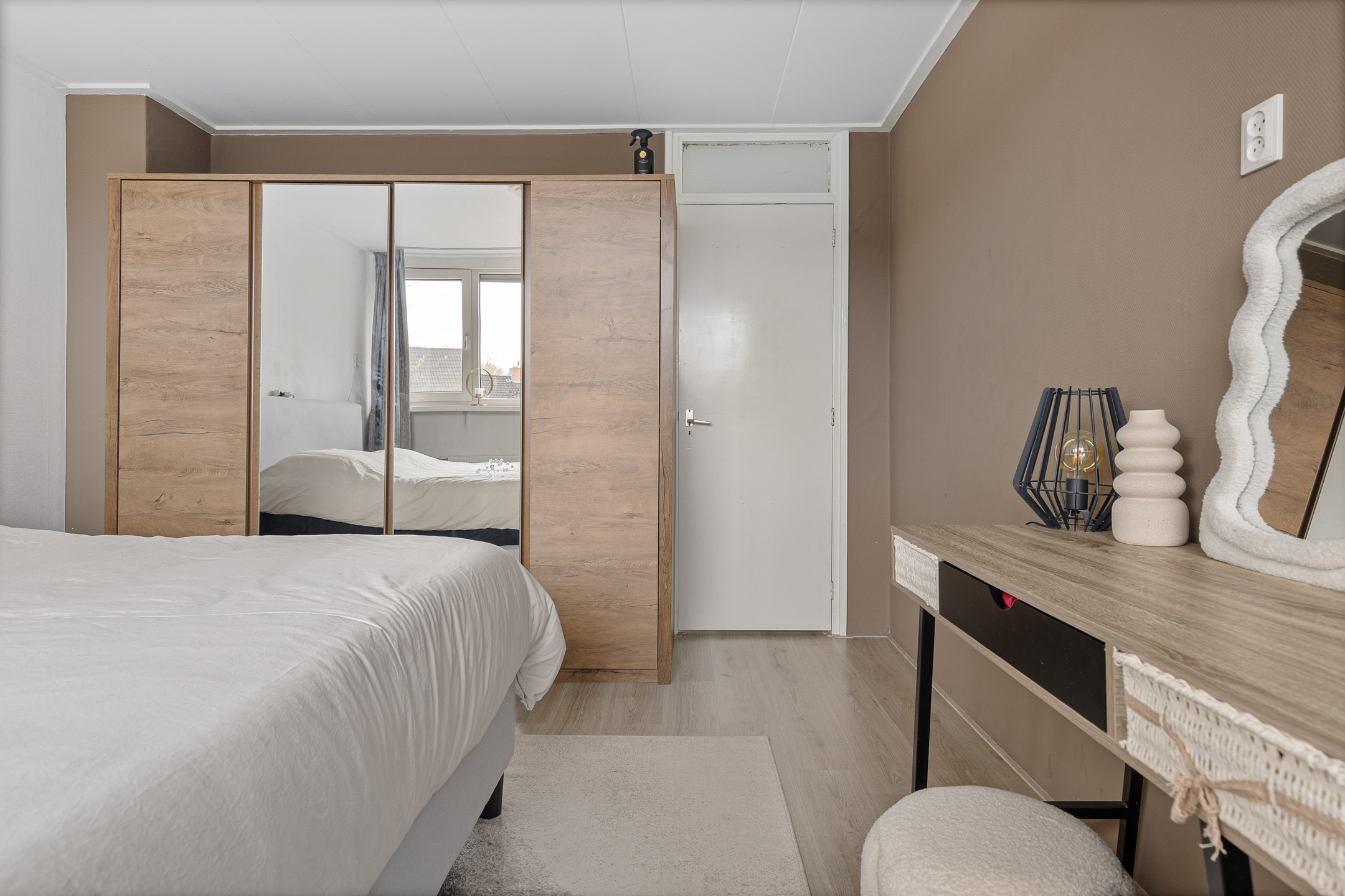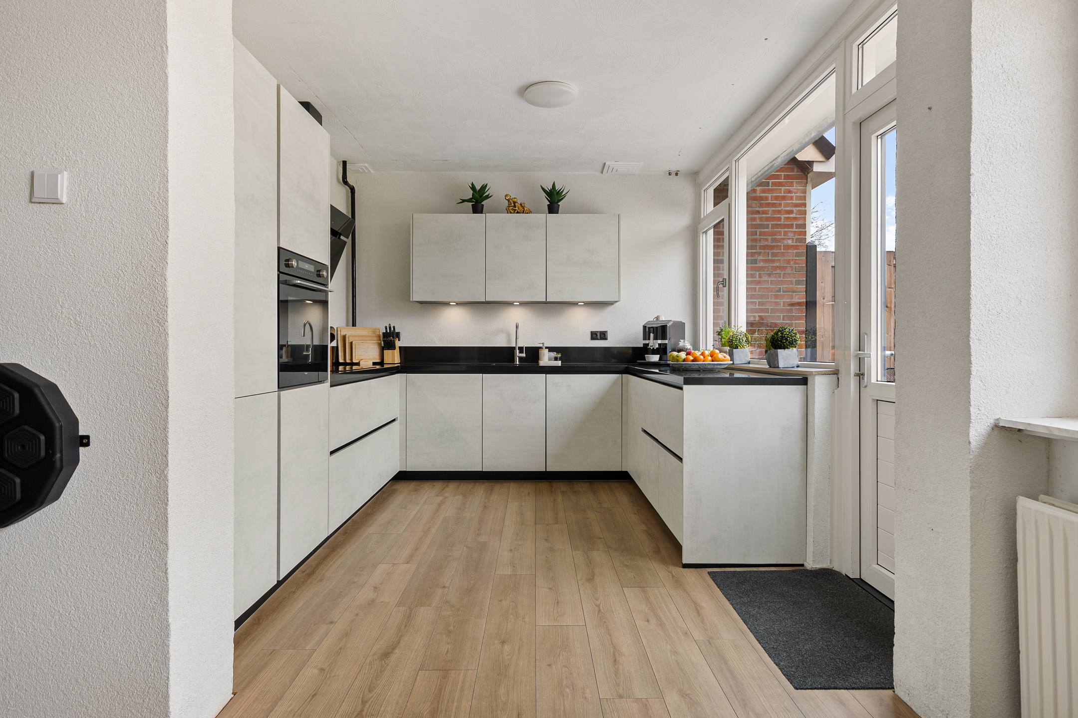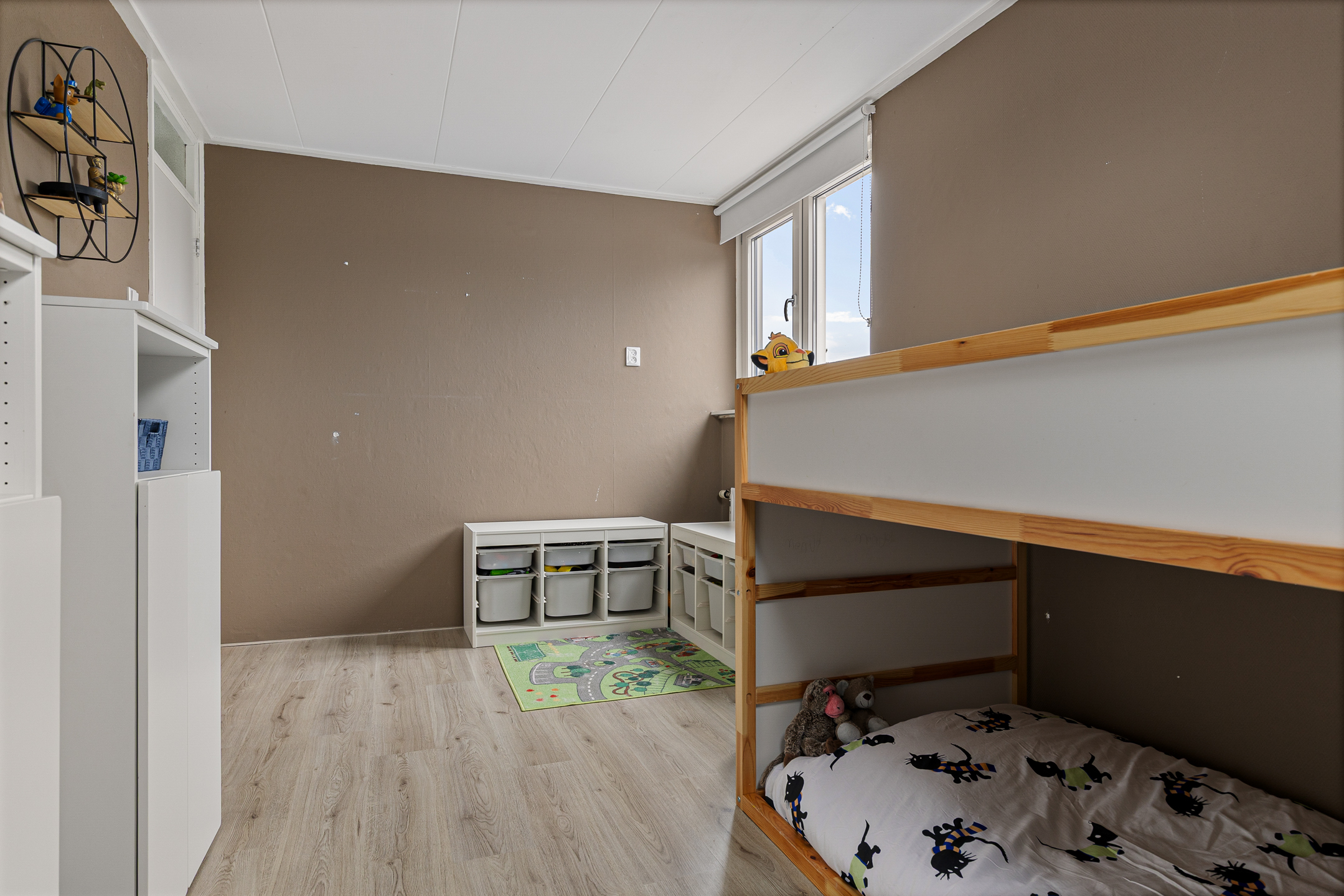 De woning is ook onderhoudsvriendelijk en modern te noemen. Onderhoudsvriendelijk vanwege de aanwezigheid van kunststof kozijnen en modern vanwege onder andere de jonge keuken- en toiletinrichting. Qua indeling speels en functioneel. Om te beginnen aan de straatzijde Z-vormige woonkamer met laminaatvloer en open haard. Tuingericht de woonkeuken met moderne inrichting, tuindeur en bijkeuken met doorgang naar de garage. Op de eerste verdieping drie functionele slaapkamers en de ruime badkamer waarbij een vaste trapopgang leidt naar de tweede verdieping. Hier is een grote zolder met slaapkamer in wording gesitueerd.