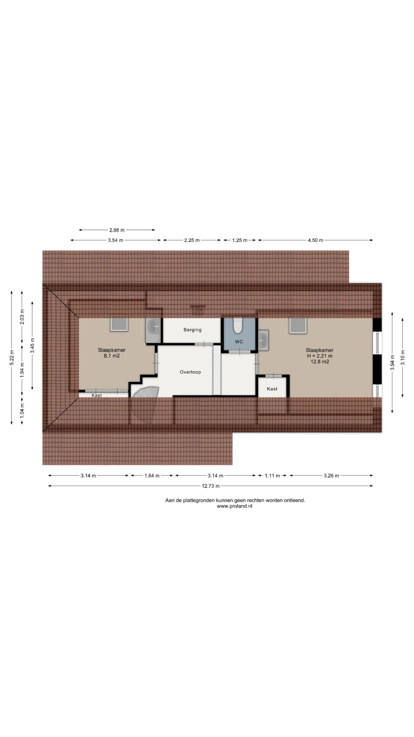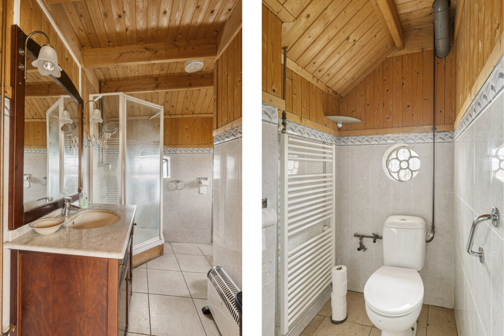 Op de verdieping zijn 2 slaapkamers van 8 en 13 m², bergruimte en een toilet.