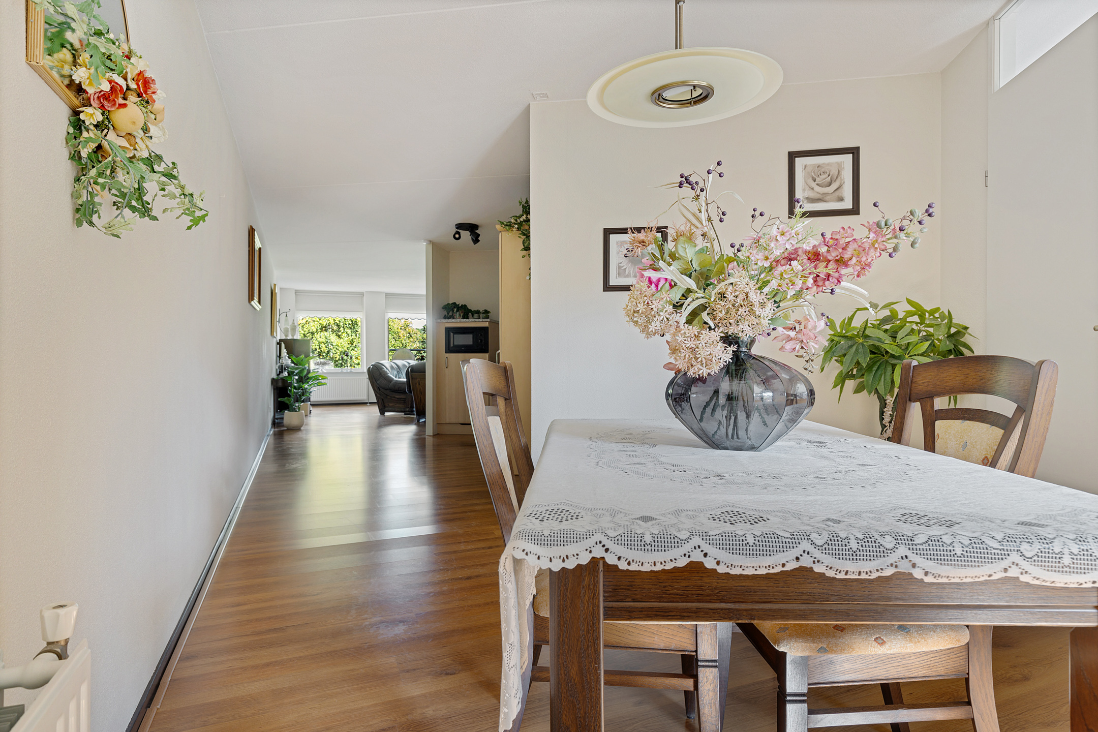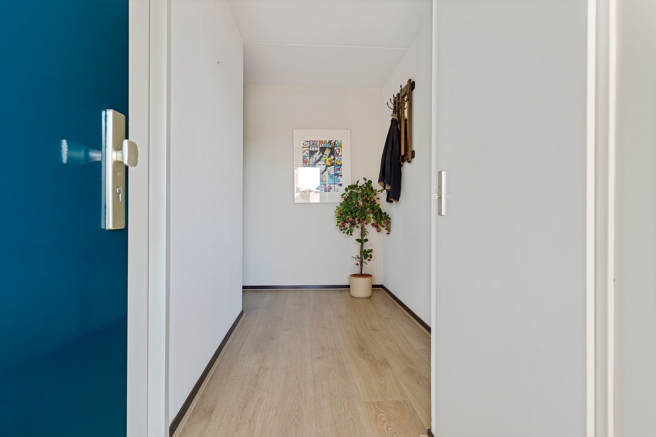 Entree/hal met meterkast en toilet. Royale en lichte woonkamer met open keuken voorzien van benodigde inbouwapparatuur en ruimte voor de eettafel.