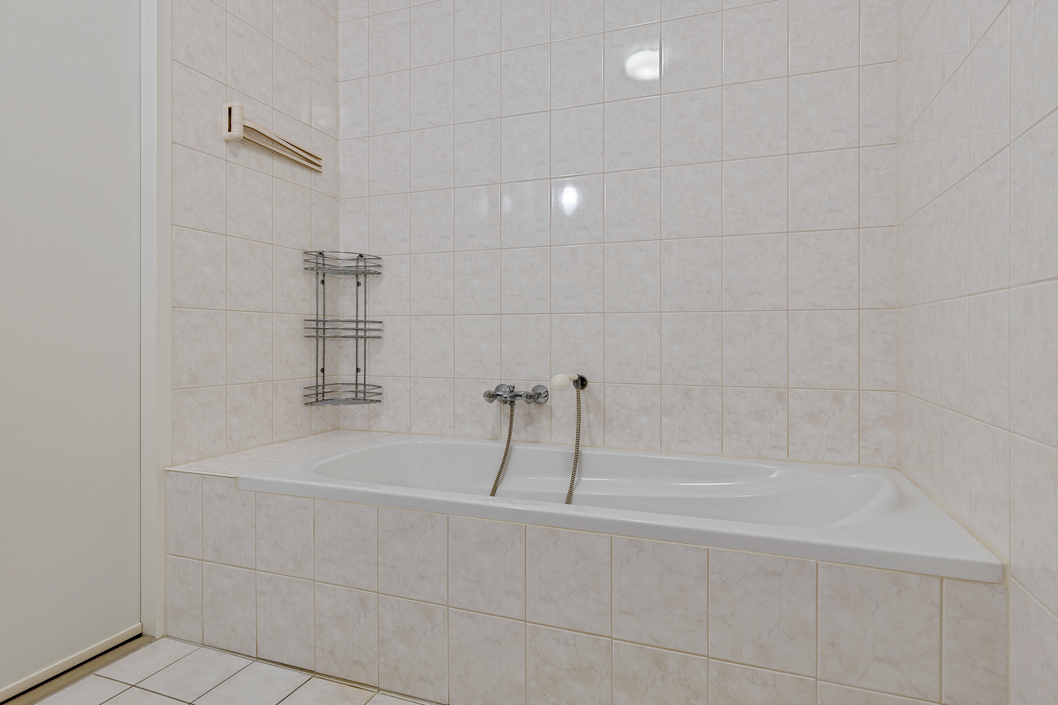 Ruime slaapkamer, badkamer met ligbad, douche en wastafel. Berging met CV opstelling.