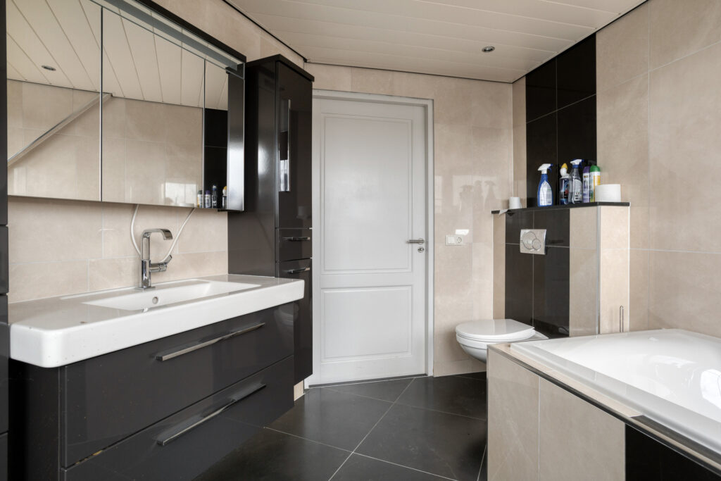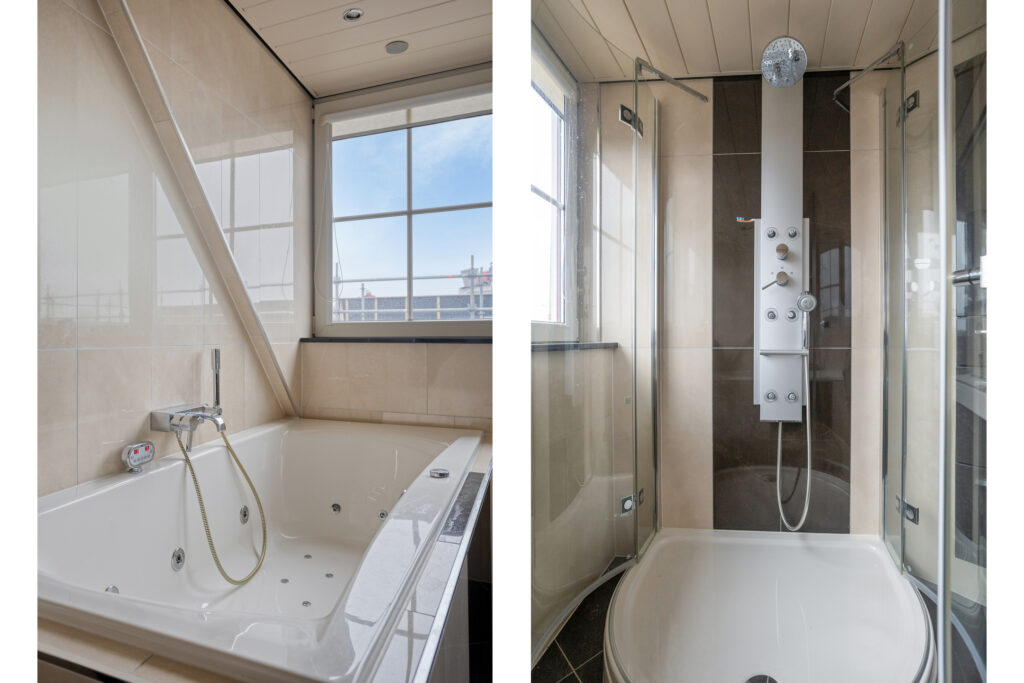 De indeling van het woonhuis is naast levensloopbestendig ook royaal en functioneel te noemen. Zo zijn er op de begane grond naast een slaapkamer ook een woon- en eetkamer aanwezig, waartussen een royale keuken. Op deze woonlaag tevens een ontvangsthal met toilet en trapopgang naar de eerste verdieping tezamen met een aangebouwde bijkeuken voorzien van een tweede toilet, een badkamer alsmede was- en stookruimte. Op de eerste verdieping vinden we nog eens vier bruikbare slaapkamers, allen voorzien van laminaatvloeren. Tot slot de moderne badkamer, compleet met dakkapel, ligbad, douchecabine, wastafelmeubel en derde toilet.