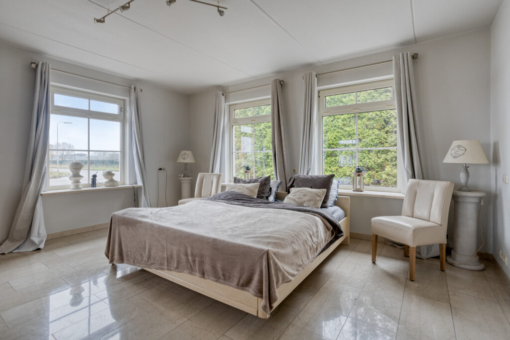 Eind jaren negentig is op een bedrijventerrein aan de zuidzijde van Winschoten, ‘op de route’ richting Blijham en Oude Pekela een vrijstaande bedrijfswoning gerealiseerd. Het geheel wordt in de eerste plaats gekenmerkt door de degelijke en royale uitvoering ervan. Het laatste blijkt onder mee uit de aanwezigheid van maar liefst vijf slaapkamers en twee badkamers. Overigens, één van de slaap- en van de badkamers is op de begane grond gesitueerd. Hierdoor is het woonhuis ook levensloopbestendig te gebruiken. Het terrein is grotendeels verhard en bebouwd met diverse opstallen, waaronder een functionele Romneyloods van bijna 135 vierkante meter.