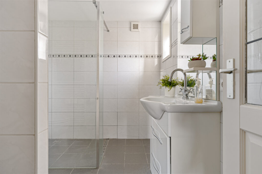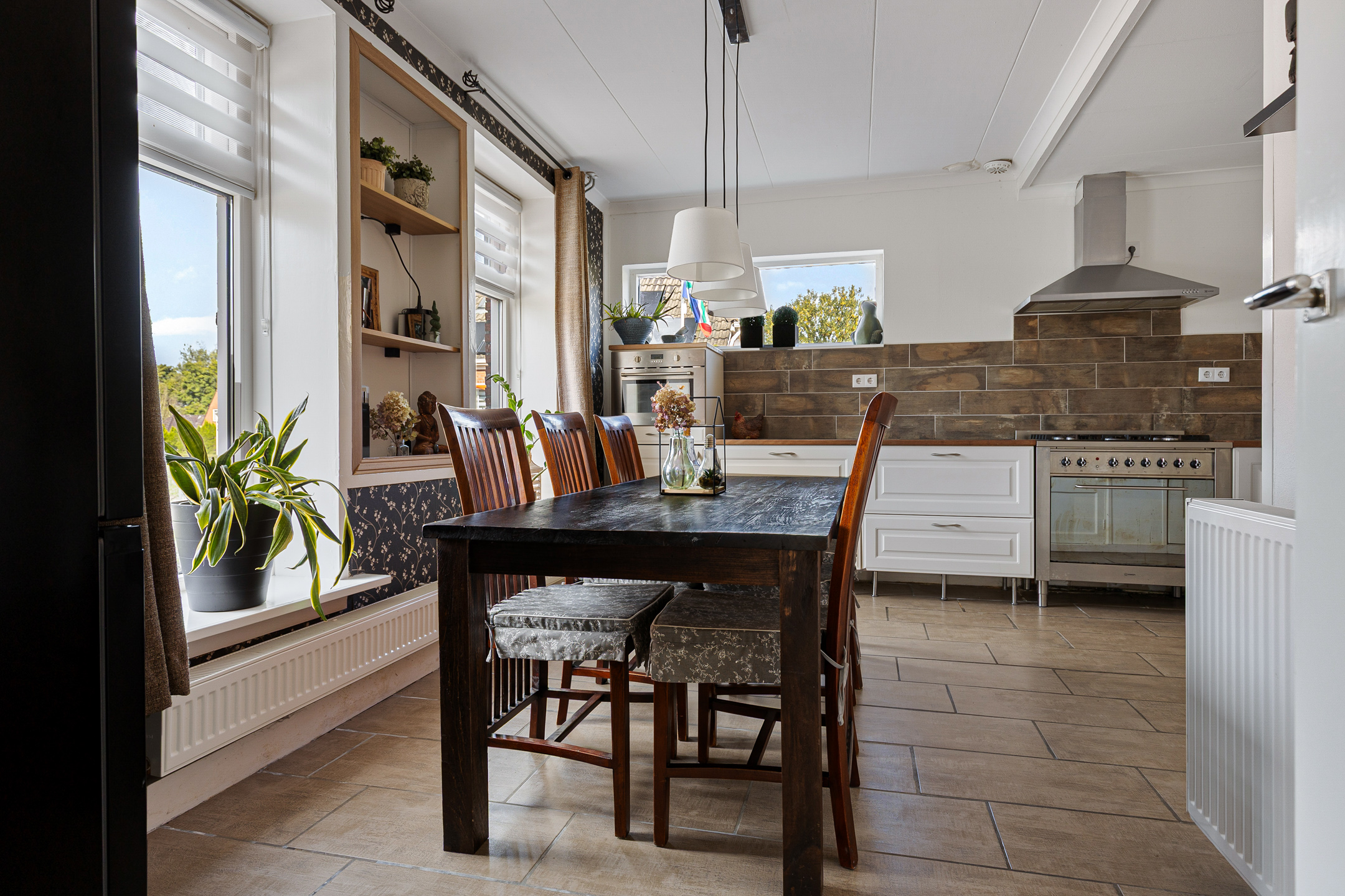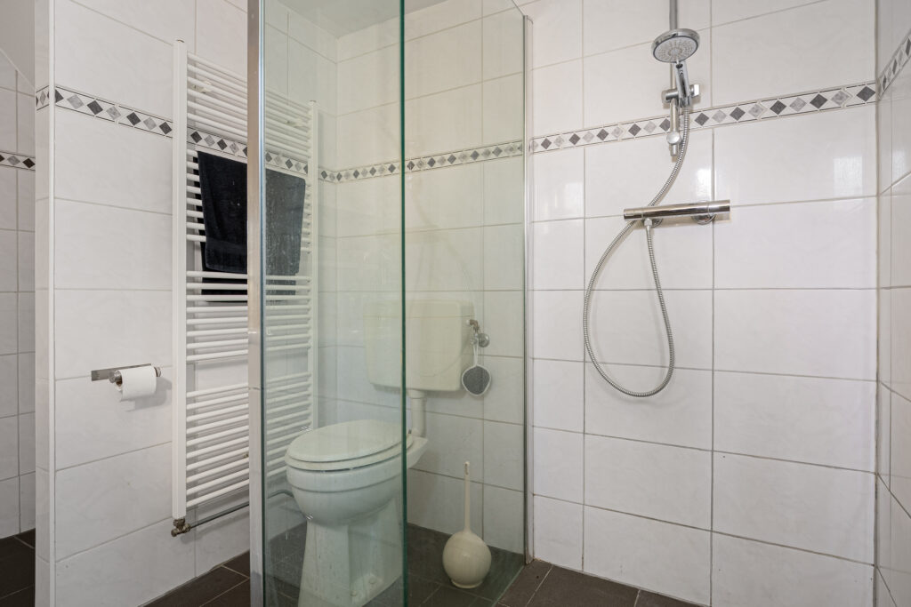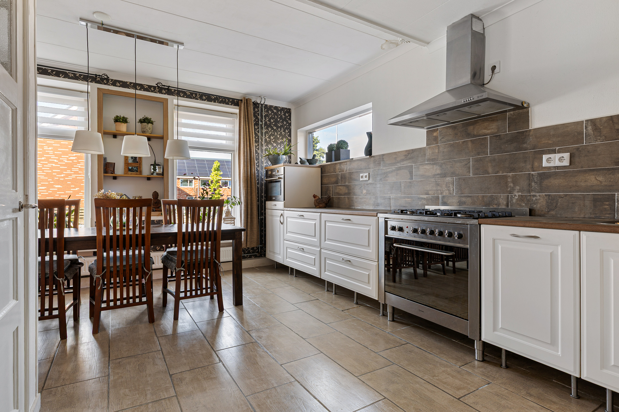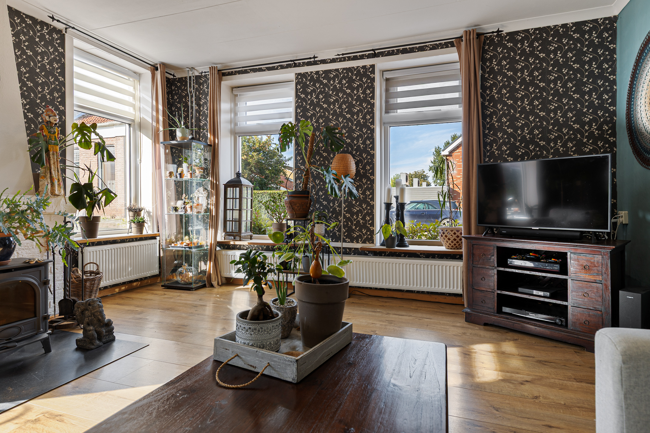 De indeling is verrassend maar ook functioneel en dus levensloopbestendig te noemen. Aan de straatzijde de woonkamer en separate -keuken. De woonkamer beschikt over een sfeervolle houtkachel en tuindeuren. De woonkeuken juist over een nette inrichting met inbouwapparatuur en provisieruimte. Verder op de begane grond een separaat toilet, de eerste badkamer - ligbad, inloopdouche en wastafelmeubel - en de trapopgang naar de eerste verdieping. Tot slot op deze woonlaag de slaapkamer voorzien van een ‘en suite’ badkamer met inloopdouche, tweede toilet en wastafelmeubel. Op beide verdiepingen zijn tot slot een tweetal slaapkamers, de multifunctionele kamer en diverse bergruimtes aanwezig.