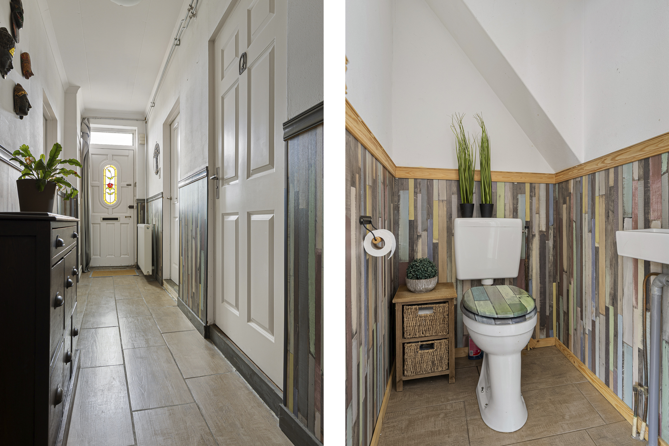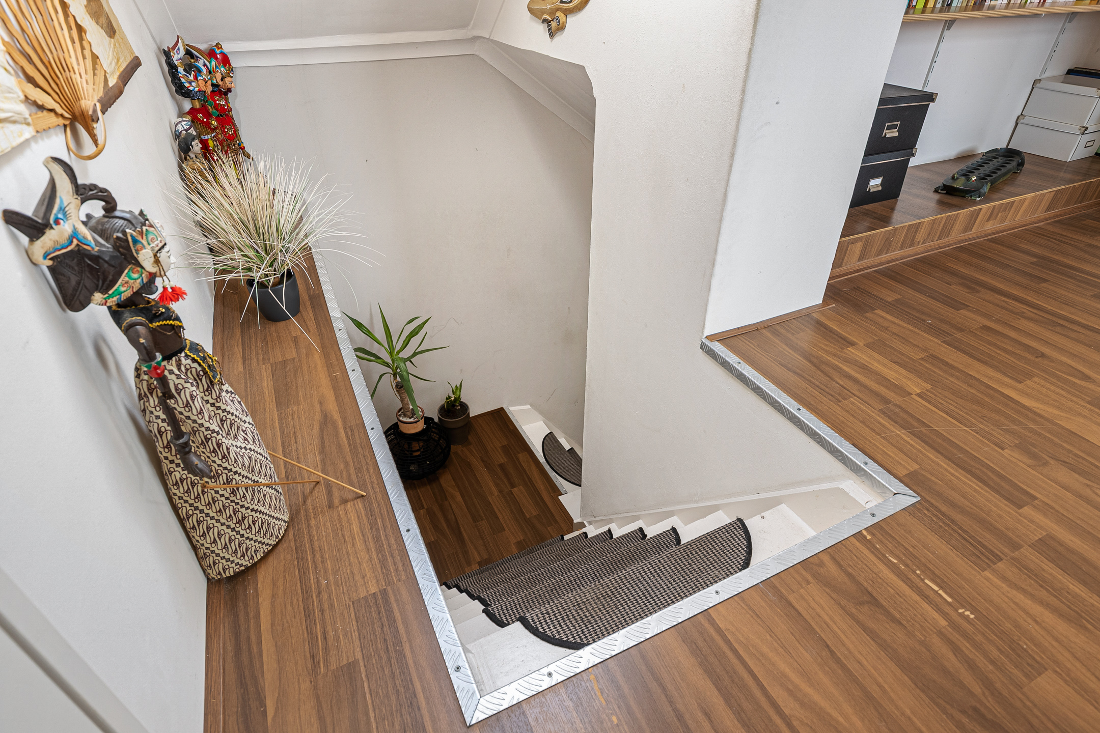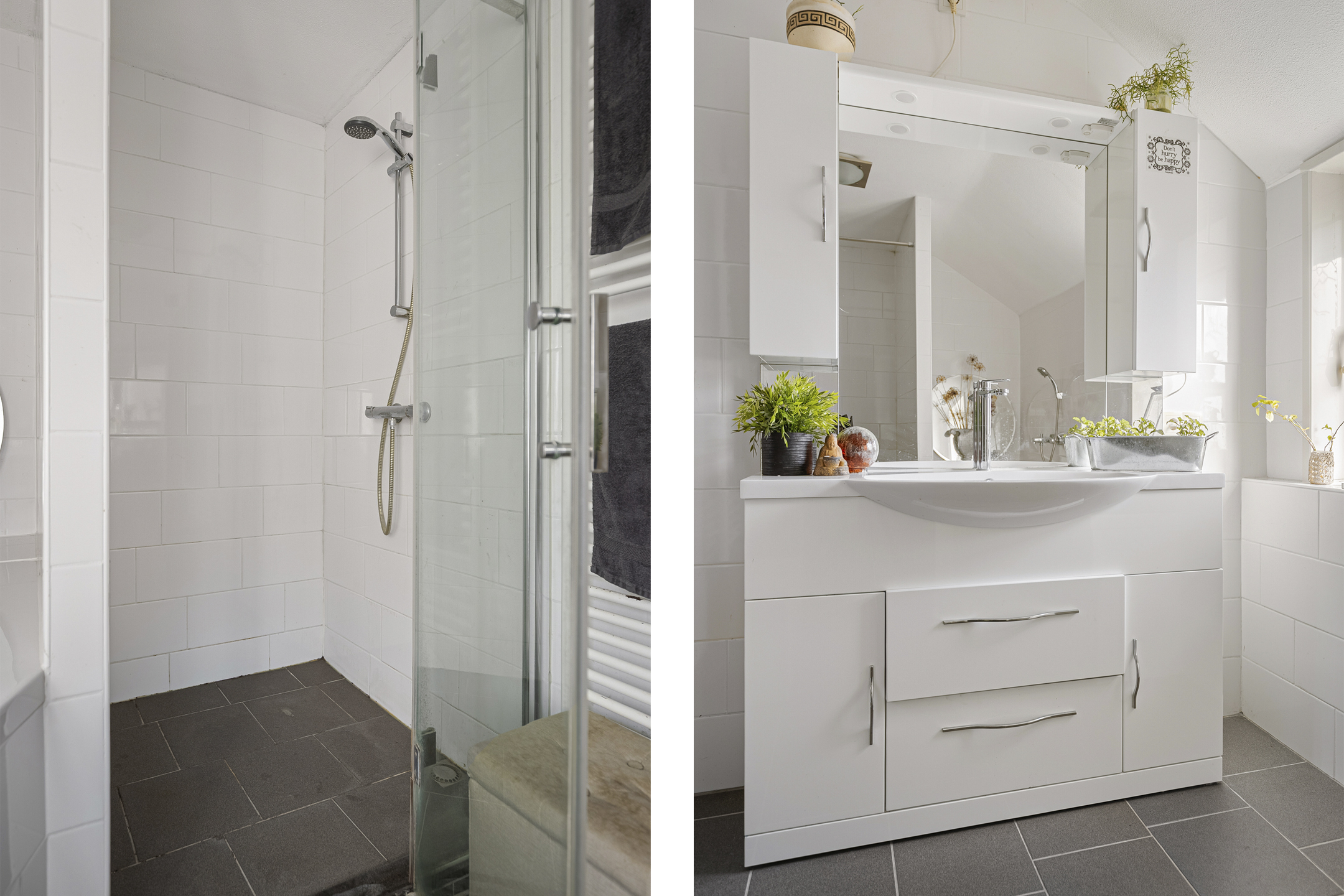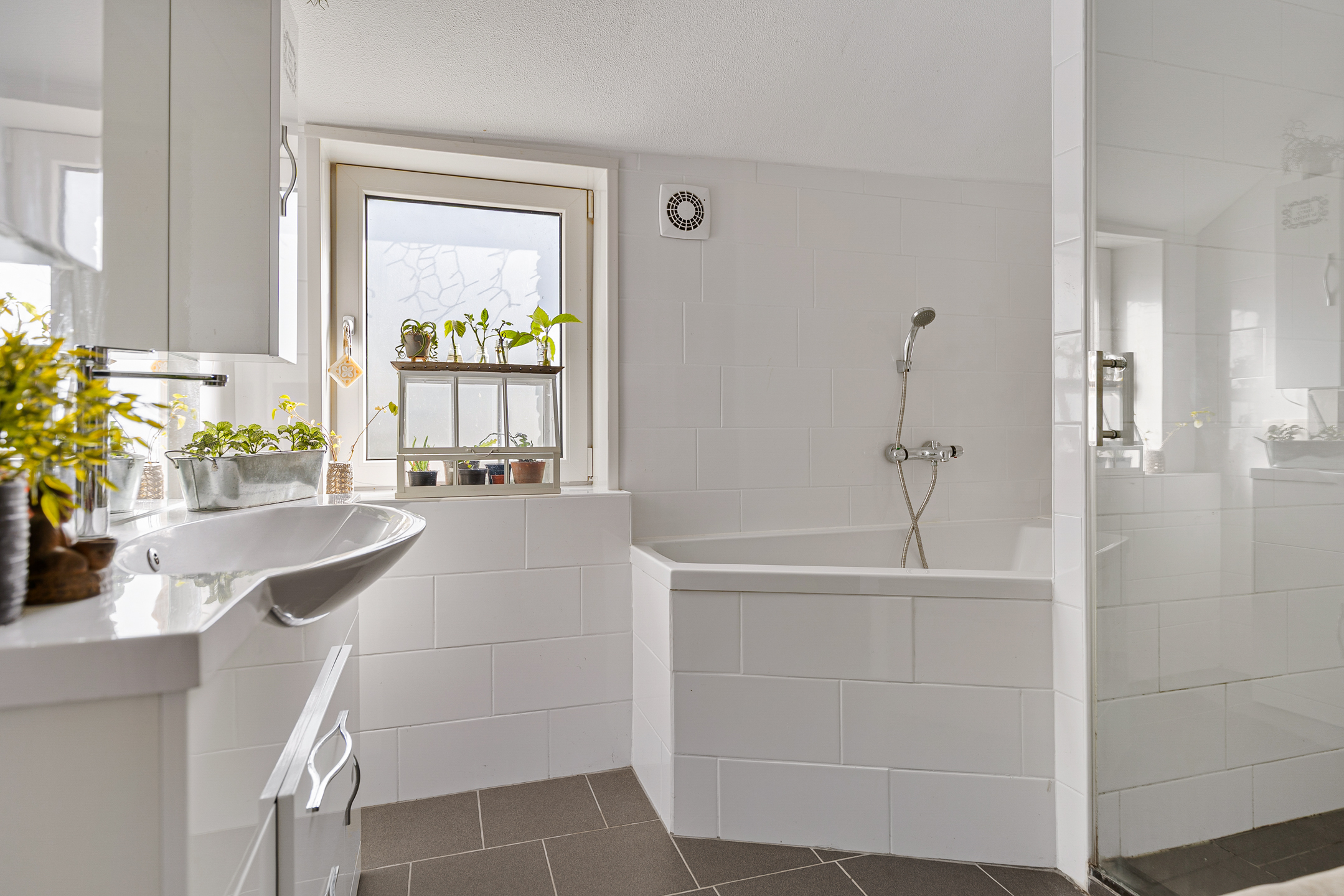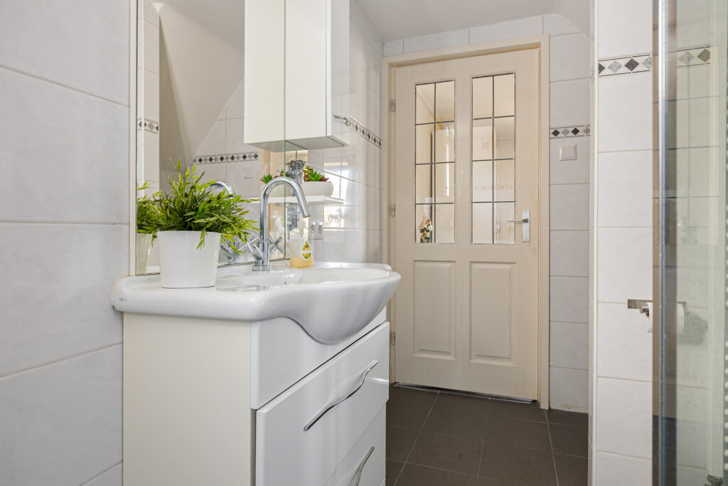 De indeling is verrassend maar ook functioneel en dus levensloopbestendig te noemen. Aan de straatzijde de woonkamer en separate -keuken. De woonkamer beschikt over een sfeervolle houtkachel en tuindeuren. De woonkeuken juist over een nette inrichting met inbouwapparatuur en provisieruimte. Verder op de begane grond een separaat toilet, de eerste badkamer - ligbad, inloopdouche en wastafelmeubel - en de trapopgang naar de eerste verdieping. Tot slot op deze woonlaag de slaapkamer voorzien van een ‘en suite’ badkamer met inloopdouche, tweede toilet en wastafelmeubel. Op beide verdiepingen zijn tot slot een tweetal slaapkamers, de multifunctionele kamer en diverse bergruimtes aanwezig.