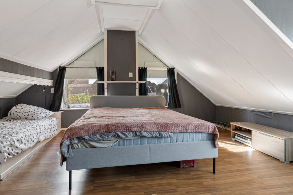 Veelal hebben vrijstaande woningen wel de beschikking over een eigen oprit. De Klapsterweg 18 beschikt er zelfs over twee. Ook nog eens geschikt voor de stalling van meer dan twee auto’s! Eén van beide opritten verschaft daarbij toegang tot de aangebouwde garage annex berging met een eigen verdieping. Op deze verdieping bevindt zich de multifunctionele kamer met een speels balkon aan de tuinzijde. Achter de woning is namelijk de heerlijke siertuin op het zuidoosten gelegen, onder andere toegankelijk via de tuindeuren vanuit de woonkamer. Woldendorp is tot slot een dorp met een functioneel voorzieningenniveau, waaronder meerdere onderwijsinstellingen en een buurtsuper.