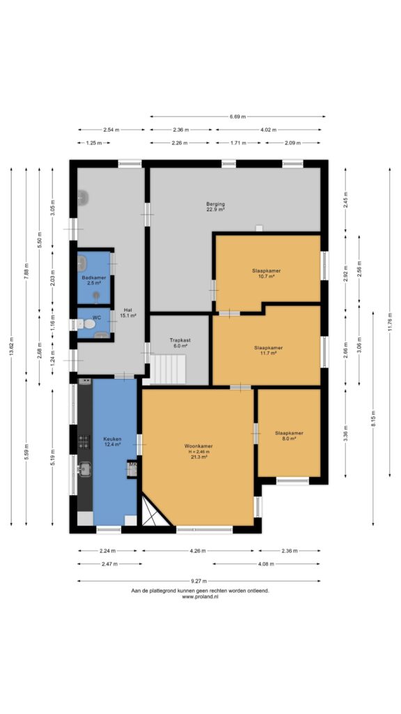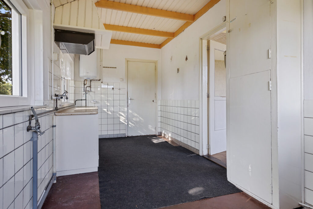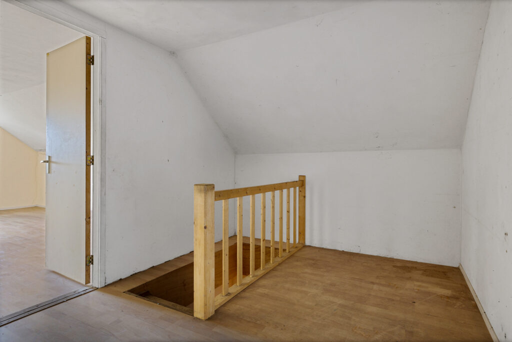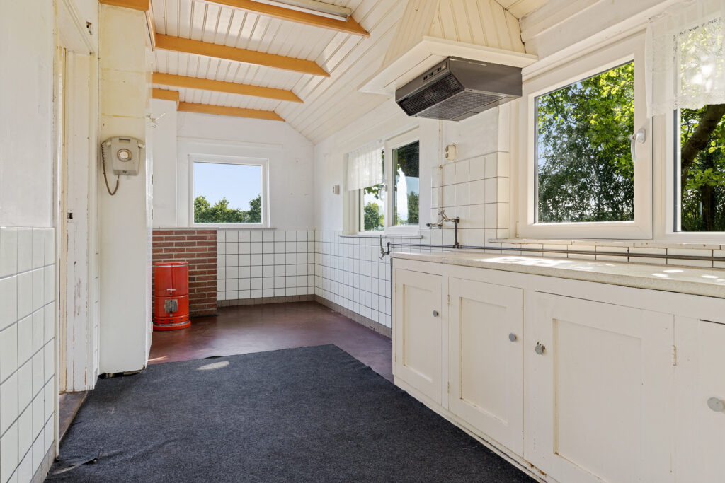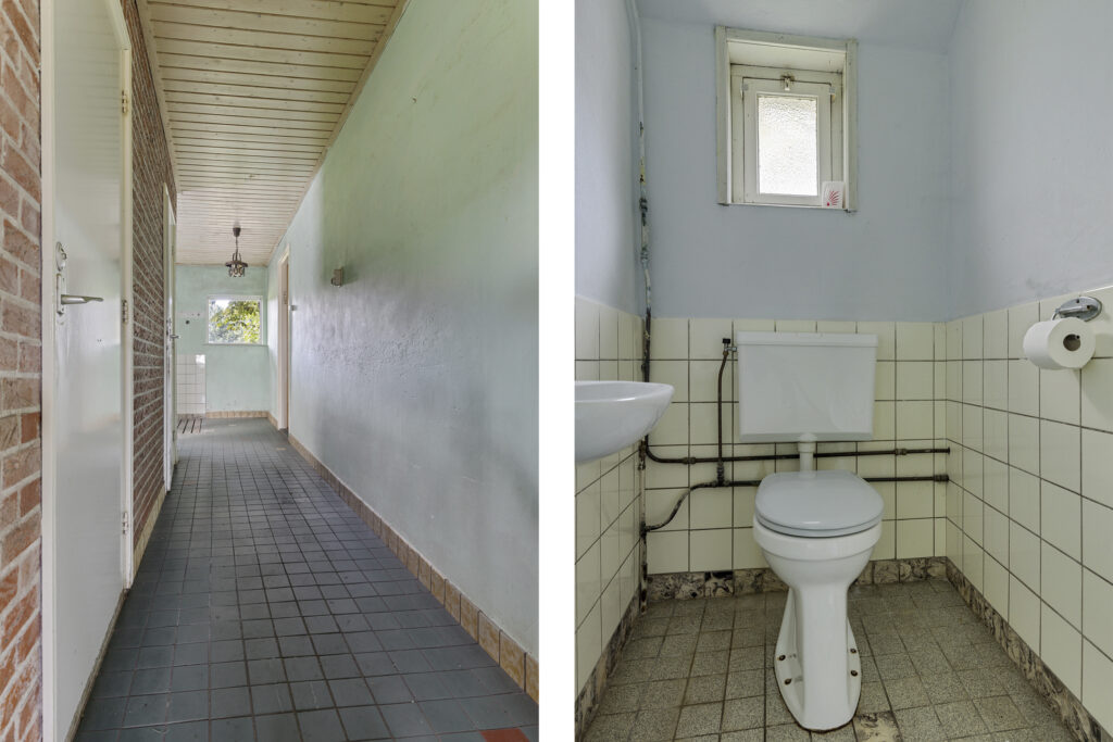 De woning zelf is eenvoudig gedateerd te noemen maar biedt wel veel potentie. De huidige indeling is levensloopbestendig te noemen doordat nagenoeg alle vertrekken op de begane grond zijn gesitueerd. De woonkamer biedt een fraai uitzicht over de landerijen en sluit aan op de huidige keuken. In totaal zijn er drie slaapkamers op de begane grond met een eenvoudig toilet en dito badkamer. Intern is ook nog een schuur annex berging aanwezig die eenvoudig bij het woonoppervlakte gevoegd kan worden. Op de verdieping is momenteel één slaapkamer gesitueerd, toegankelijk vanaf een overloop. Om de mogelijkheden voor de benodigde verbouwing te beoordelen geven de plattegronden en goede basis.