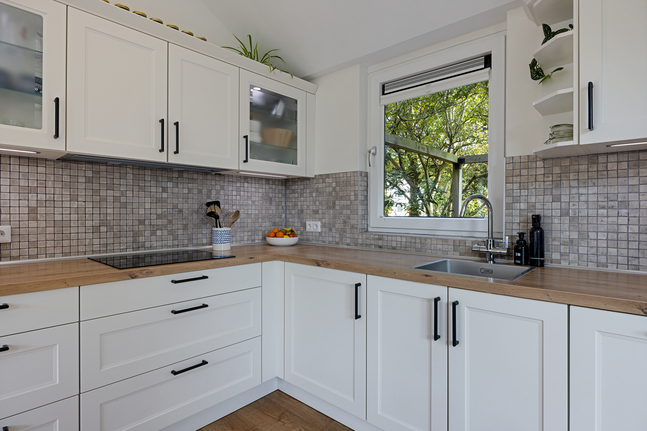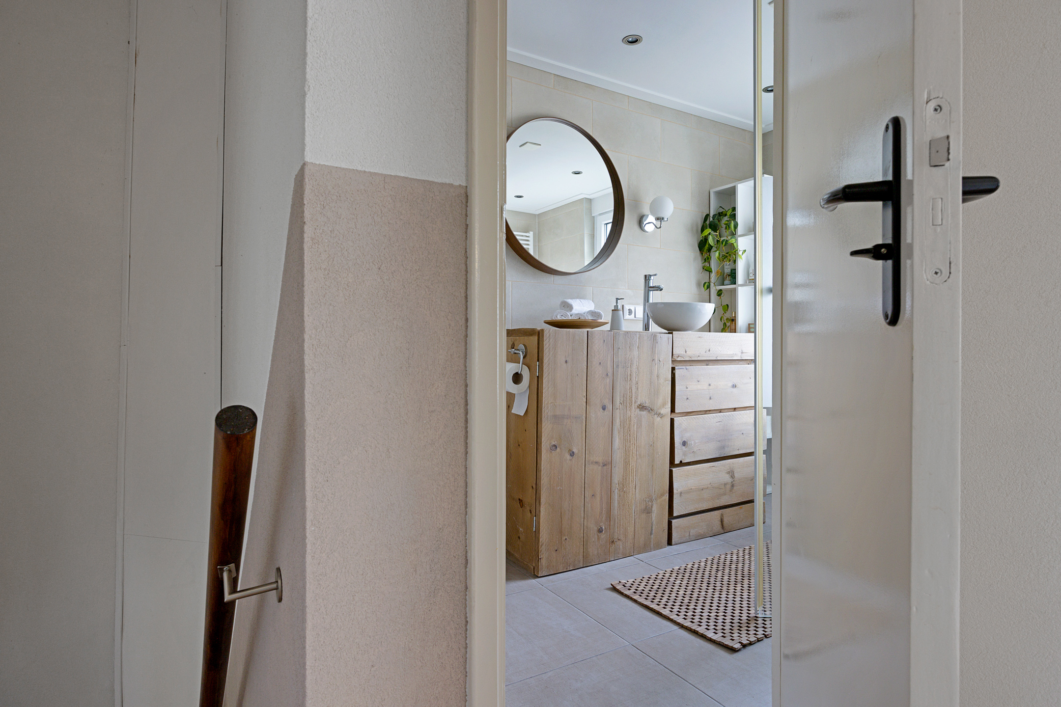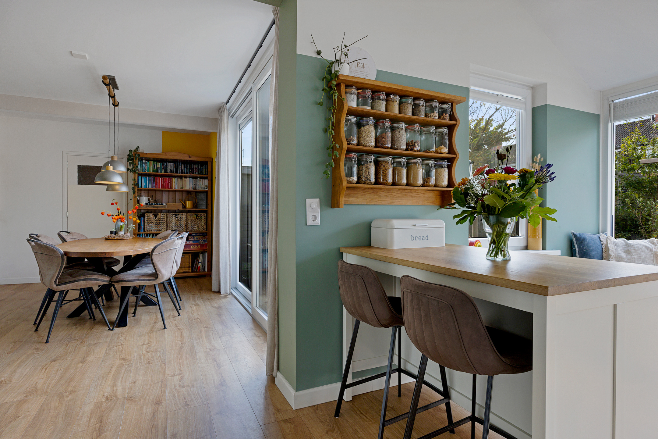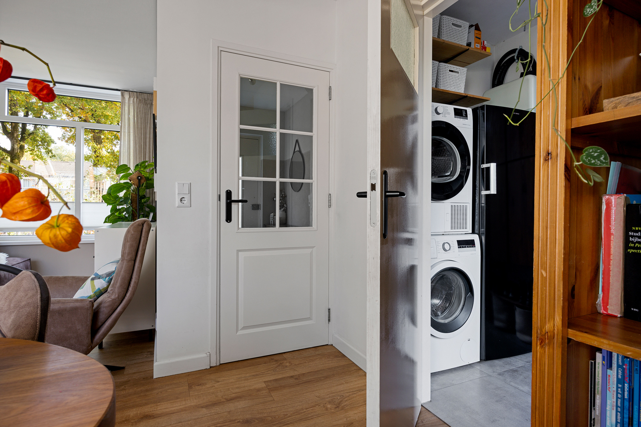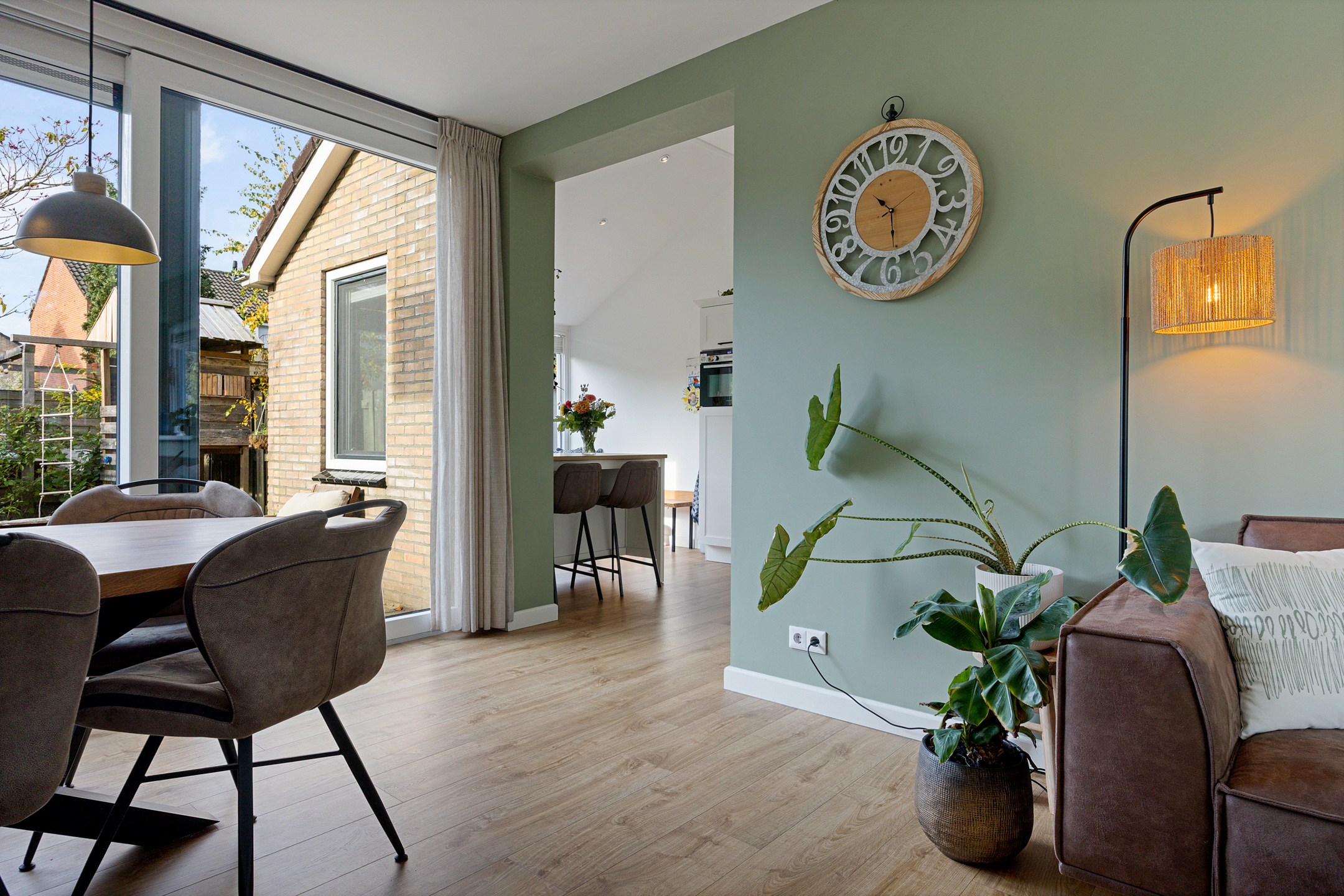 Met name de indeling op de begane grond valt direct op. In 2020 is de gehele benedenverdieping grondig verbouwd waarbij de huidige woonkeuken is gerealiseerd op de plek waar oorspronkelijk een slaapkamer en badkamer waren gesitueerd. De woonkamer zelf beschikt over een keurige PVC vloer en schuifpui naar de achtertuin. Verder uiteraard een entree met modern toilet, trapkast, -opgang naar de eerste verdieping en een functionele bijkeuken. De eerste verdieping onderging in 2019 een vernieuwing en biedt drie keurige slaapkamers met laminaatvloeren. Daarnaast de moderne badkamer met dito ligbad, inloopdouche, wastafelmeubel en wandcloset. Een vlizotrap leidt tot slot naar de bevloerde vliering op de tweede verdieping.